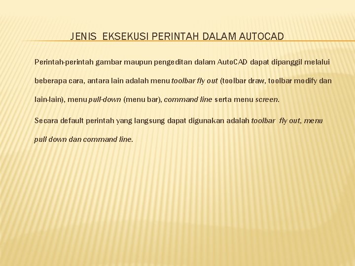 Di artikel ini saya akan mengulas tentang tollbar yang sering digunakan dalam pengerjaan gambar 2d untuk gambar kerja atau gambar bestek. Lalu apa itu line dan polyline? Saya menggunakan autocad 2014 dalam kursus autocad gratis ini, namun semua tahapan, dan teknik yang dilakukan dapat di aplikasikan pada versi autocad terdahulu mulai dari autocad 2000 hingga autocad. Untuk memudahkan mengatur gambar yang akan dibuat, perlu ditetapkan bidang gambar yang akan digunakan. Terdapat banyak cara untuk menggunakan perintah ini. Menebalkan ataupun menipiskan sebuah garis pada objek 2d sketch di autocad memiliki arti tersendiri. Salah satu perintah penunjang yang dapat anda gunakan yaitu perintah extrude. 3d perintah dasar drawing, block, dasar menggambar objek dasar 2d dan 3d (draw dan solid), dimension, drafting setting, gambar isometric, gambar prespektif, gambar tampak, layer, lights, manajemen objek (layering), material editing, materials, membuat gambar. Sedangkan perintah plan pada autocad adalah untuk mengembalikan hasil yang telah kita buat menjadi tampilan 3d dengan ddvpoint menjadi tampilan 2d kembali. Kali ini basic arsitek akan membahas tentang cara menggunakan perintah line dan polyline di software autocad. perintah autocad sebelum memulai kursus. Semua objek 2d bisa diubah menjadi objek 3d. Selasa, 23 september 2014 edit page 1 of 3 1 2 3 next › last